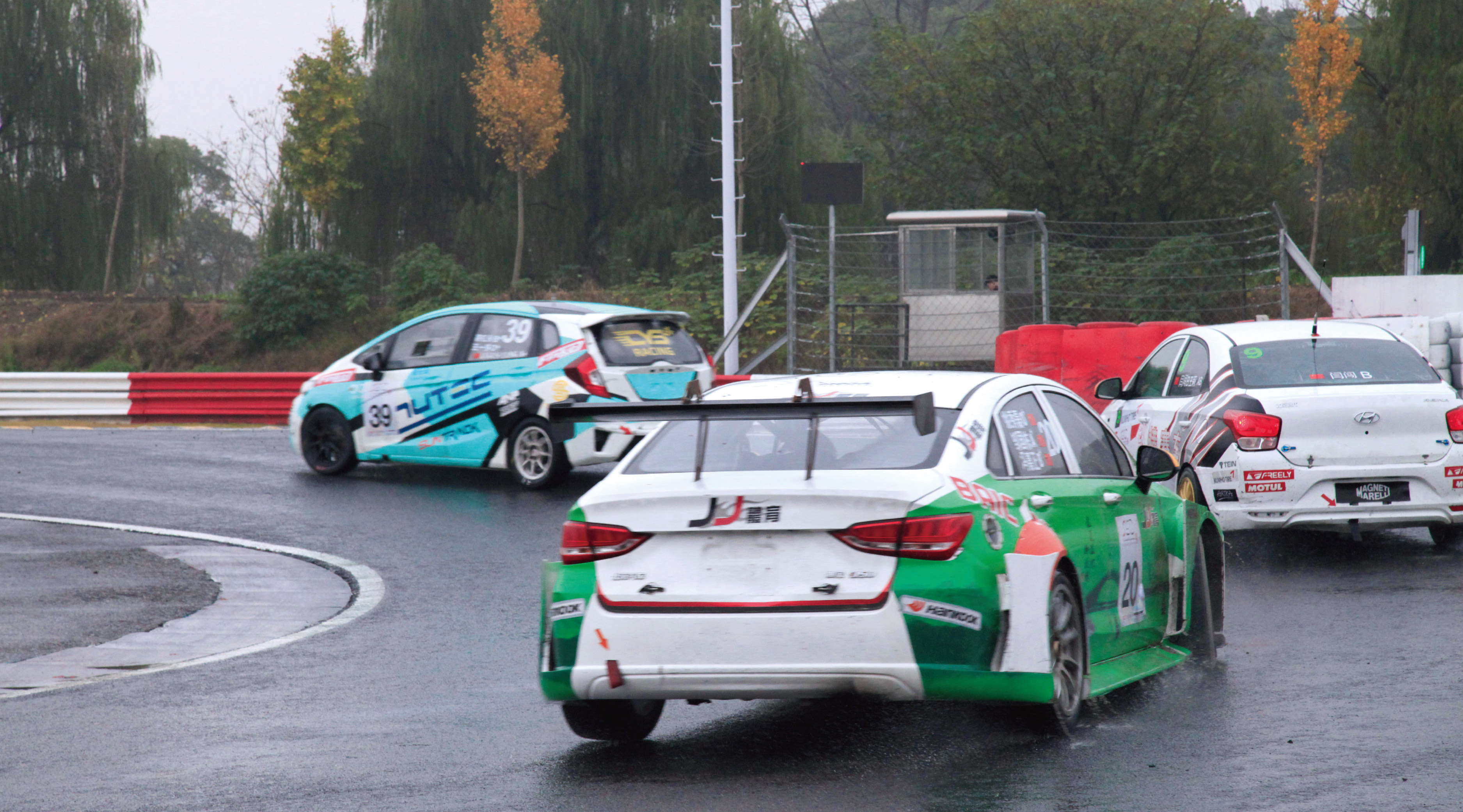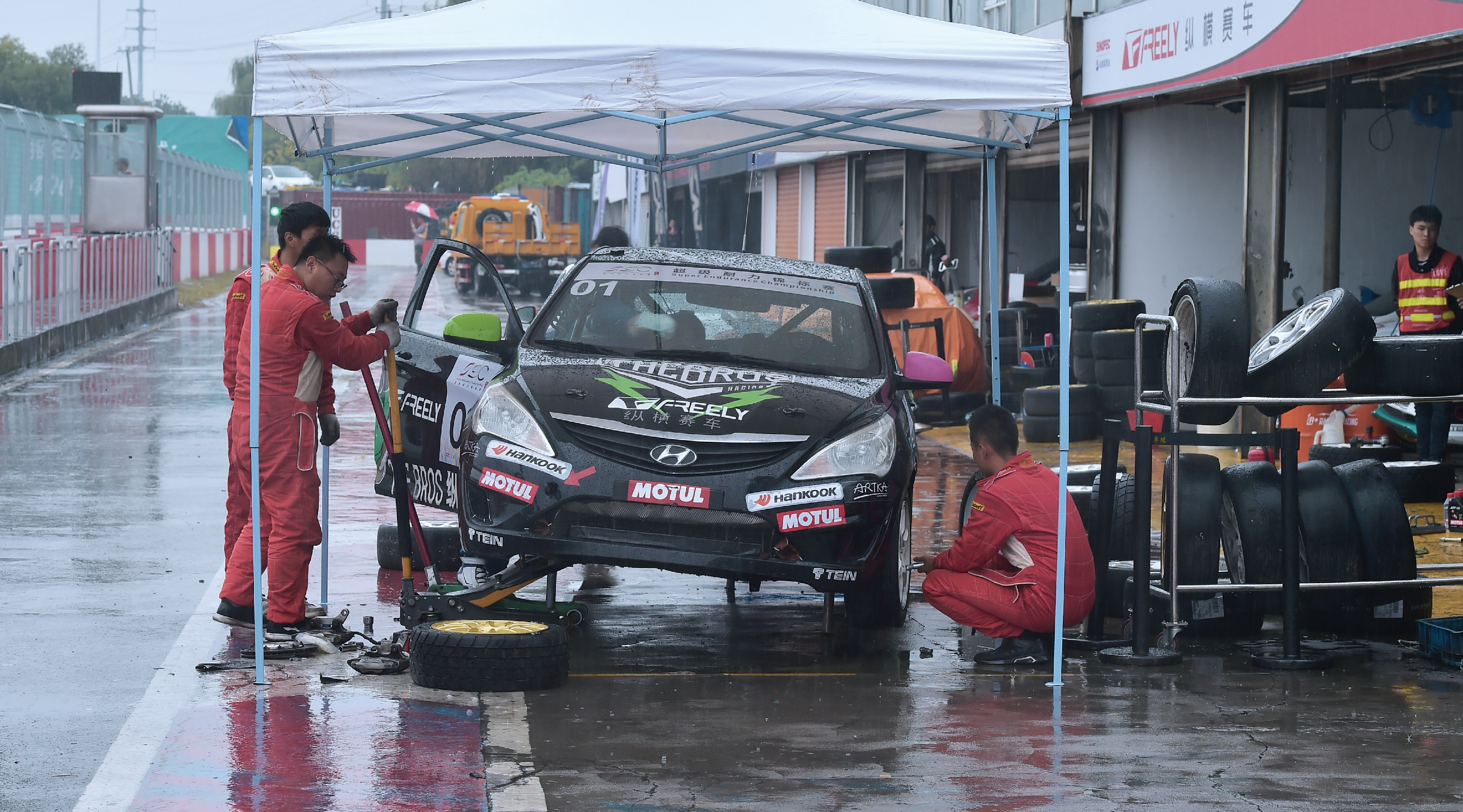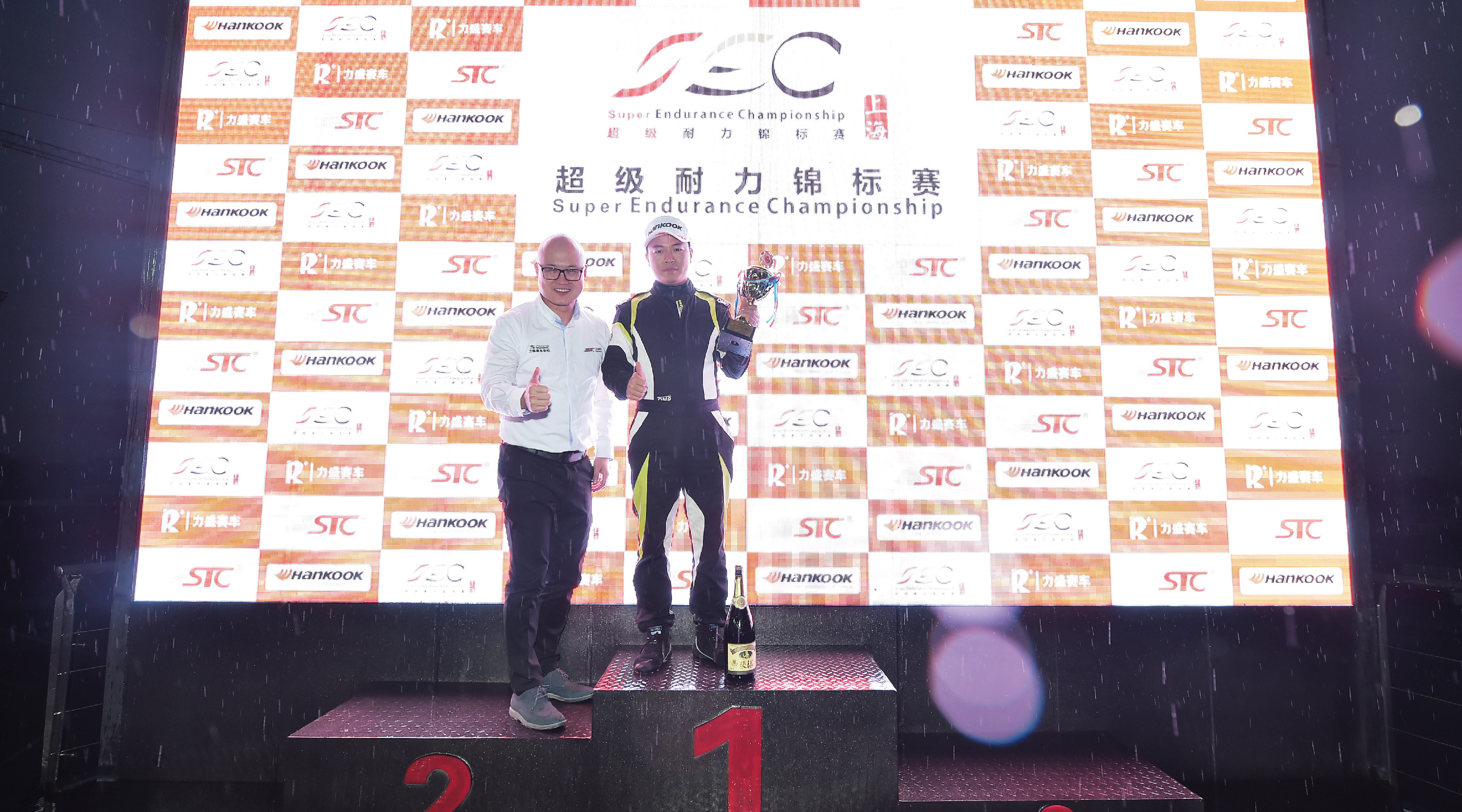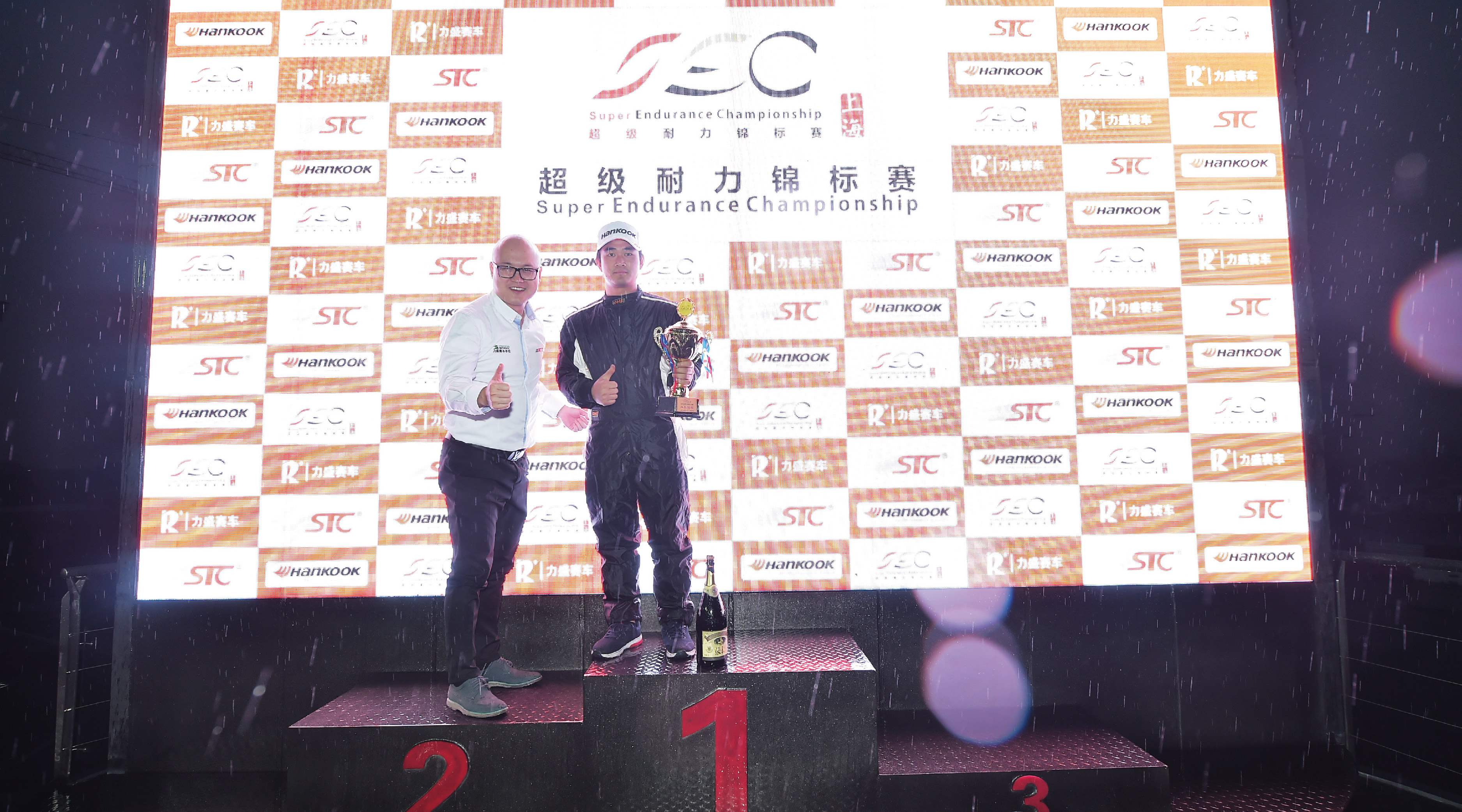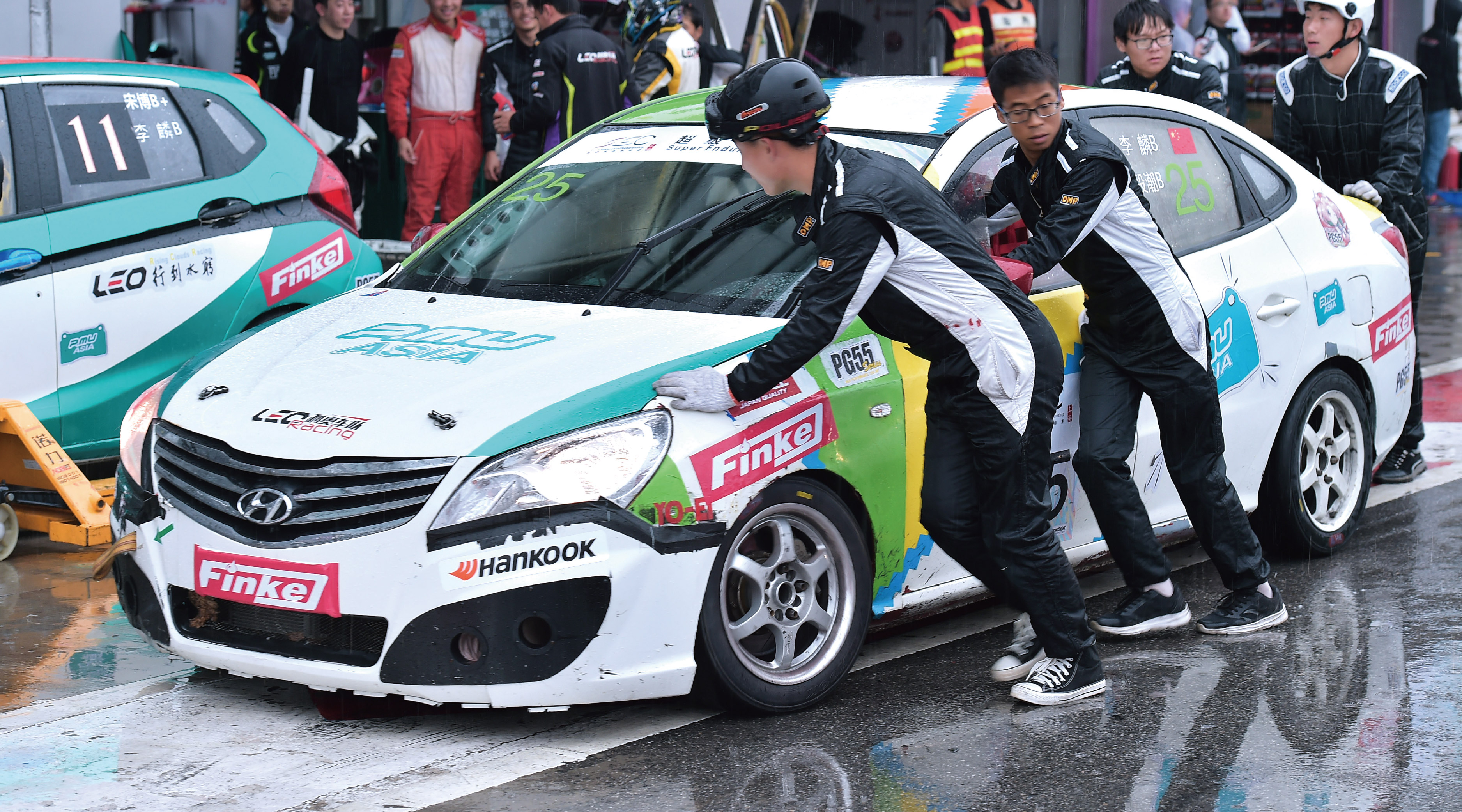 决赛从上午十点半开始,到下午四点半结束,长达6个小时。经过前一天的排位赛,杆位起步的是第一次参加SEC的Maxperdingrods23号车组,第二顺位是Delta Racing Team98号车组,利奥P.MU ASIA车队的11号车组排位第三。本场的参赛选手都有着丰富的赛事经验,对天马赛道也相对熟悉,所以一开始就能够调整自身的状态快速适应比赛节奏。在比赛进行到两个小时时,突如其来的大雨稍稍打乱了大家稳定的节奏,也给冗长的赛程带来了新的悬念。各车组陆续回到维修区更换雨胎,韩泰作为官方唯一指定轮胎则时刻准备着为参赛车手们安全顺利完赛保驾护航,其专为湿滑赛道设计的雨胎,能有效防止水滑,有着优秀操控性和排水能力。换完轮胎后比赛继续进行,6小时的比赛并非单靠速度就能取胜,对于车辆的动力和耐久性,以及车手的耐力和团队间的默契配合都是一个巨大的考验。