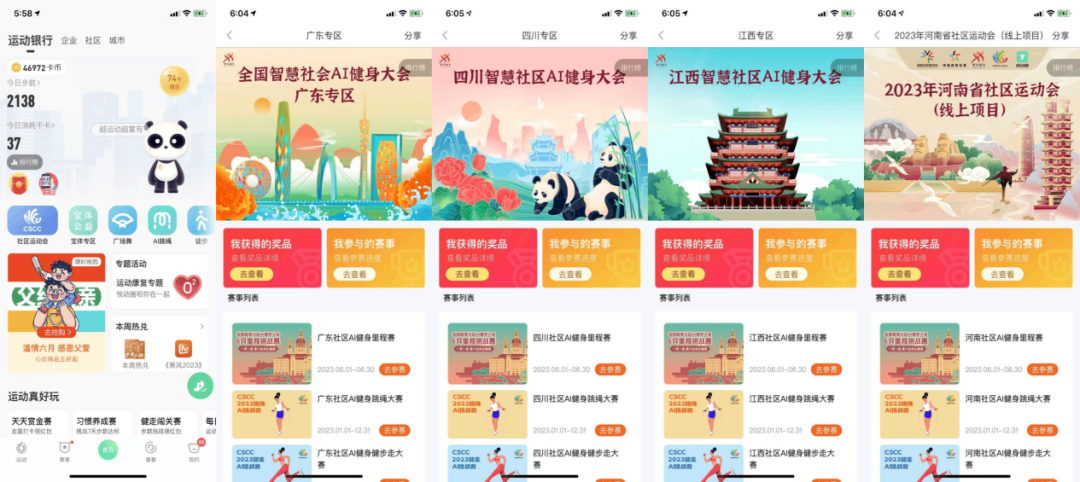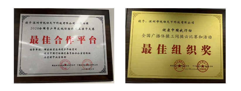 悦动圈先后与国家体育总局联合举办了如下AI运动线上比赛,包括2020年全国青少年近视防控操线上亲子大赛打卡活动、“健康中国我行动”全国第九套广播体操工间操云比赛、中华人民共和国第十届运动会第九套广播体操精英赛 AI 外卡赛、2022 年CSCC 全国智慧社区 AI 健身大会等赛事,除此之外,在2022年,悦动圈与中国啦啦操分会携手合作,推出了啦啦操线上AI智能达标考级系统,为参与者提供了线上考级的支持。