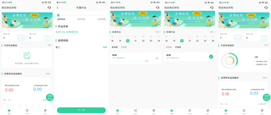 亮点:仅需一部智能手机,支持老师一键布置体育家庭作业