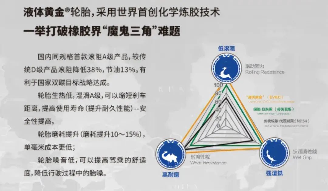赛轮集团应用国际首创化学炼胶技术,自主研发出了世界最高等级的液体黄金轮胎,破解了困扰行业百年的“魔鬼三角”难题,同时提升了轮胎的滚阻性能、抗湿滑性能和耐磨性能,更加节能、安全、耐用和舒适。这也是赛轮产品的核心竞争力所在。未来,赛轮也将继续专注于橡胶轮胎技术和服务的开发应用,继续以“做一条好轮胎”为使命,以“产品就是人品”作为质量理念,立志成为在世界范围内受尊敬、被信赖、有影响力的轮胎企业。